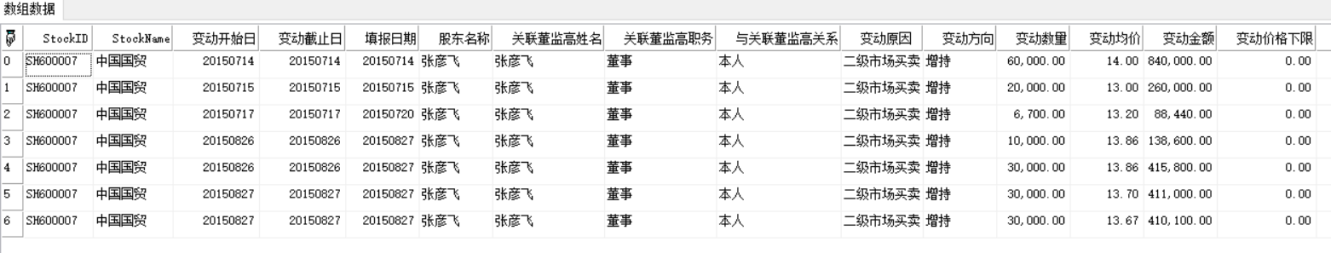 (1)取表"股票.董事、监事、高管持股变动"中'变动开始日'大于等于开始日,'变动截止日'小于等于截止日的数据。并在该基础上增加两列:'原始收盘'、'复权收盘'得到数组data;