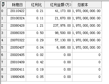 返回Array数据表结构,上市以来分红情况