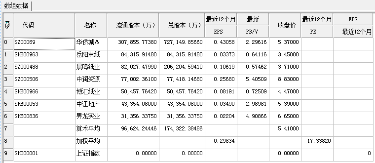 stocks:='SH600053;SH600836;SH600963;SH600966;SZ000488;SZ000506;SZ00069';