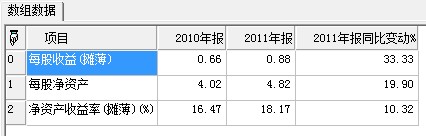 指定财务数据的纵向对比。