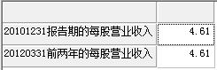return array("20101231报告期的每股营业收入":v1,"20120331前两年的每股营业收入":v2);