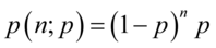在n+1次伯努利试验的第n+1次试验才得到第一次成功的机率.详细的说,是n+1次伯努利试验,前n次皆失败,第n+1次才成功的机率.