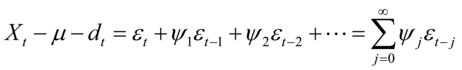 其中表示的期望.表示的线性确定性成分,如周期性成分、时间t的多项式和指数形式等,可以直接用滞后值预测.为白噪声过程。