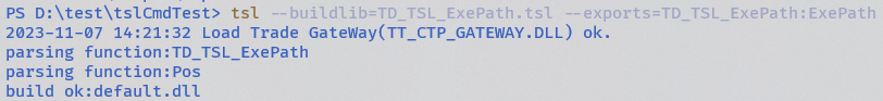 输入:tsl --buildlib=TD_TSL_ExePath.tsl --exports=TD_TSL_ExePath:ExePath
