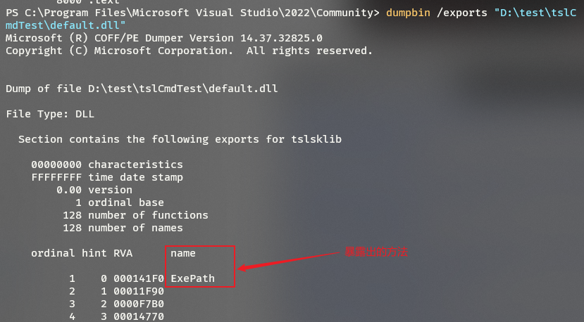 场景:将目标文件编译成动态库文件,并在动态库的函数列表中暴露函数TD_TSL_ExePath,别名为