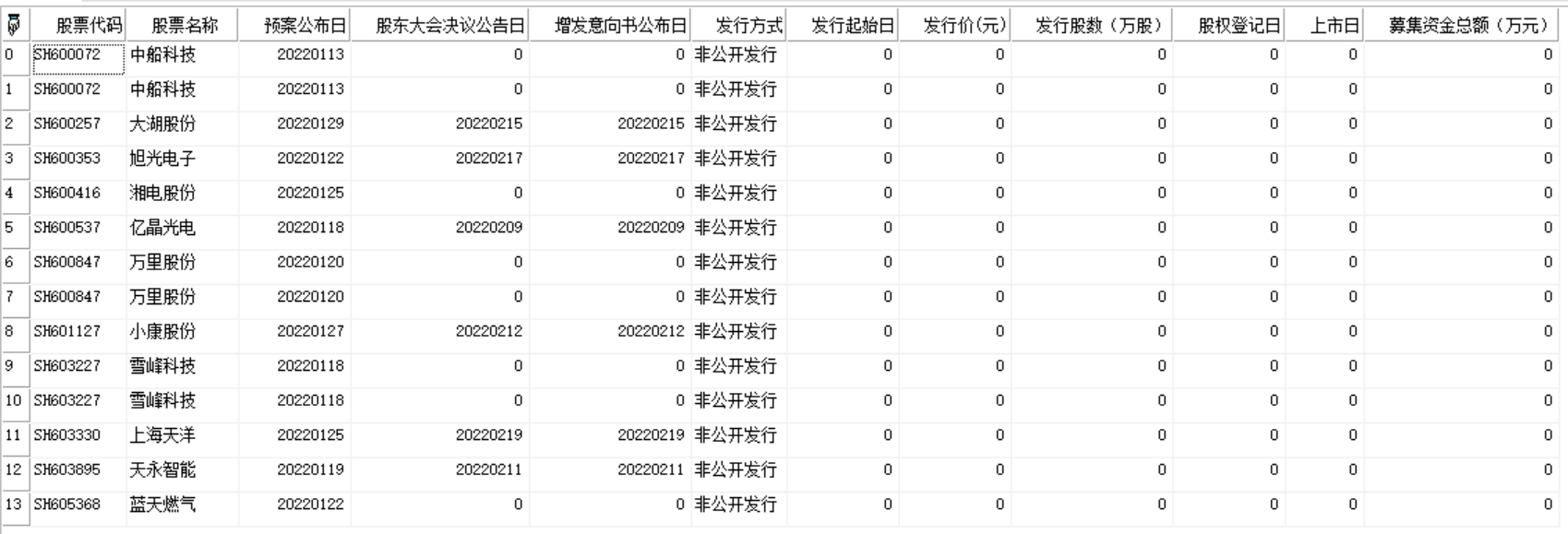 返回Array数组类型,返回指定板块指定区间增发的相关数据