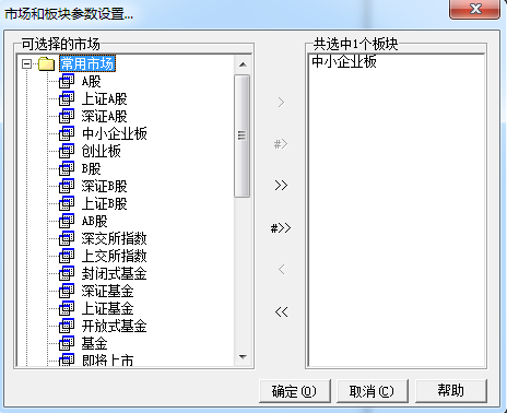 将可选证券中被选中的股票加入到右边的已选证券列表窗口。