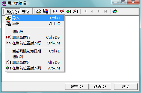 在弹出的“用户表编辑”窗口,单击“系统”->“导入”,如图2所示。