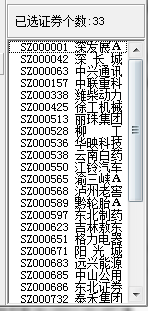 :增加证券,将待选证券列表中被选中的证券加入到右边的已选证券列表中