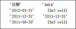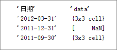 传递给MatLab之后,在MatLab中将r[1][‘data’]单元格中的空数组显示为 r[1][‘日期’]的内容,如图: