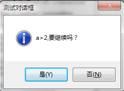 b:=rdo2 MessageBox('a>2,要继续吗?','测试对话框',c);