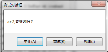 弹出消息显示框如下图,控制字mb_AbortRetryIgnore()消息显示框的第一个按钮呈浅蓝色。