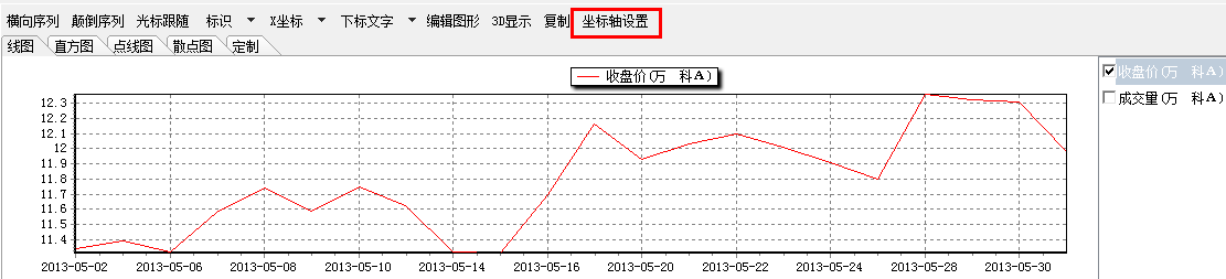 第一步:在显示的图形上方找到一栏工具栏,点击‘坐标轴设置’;
