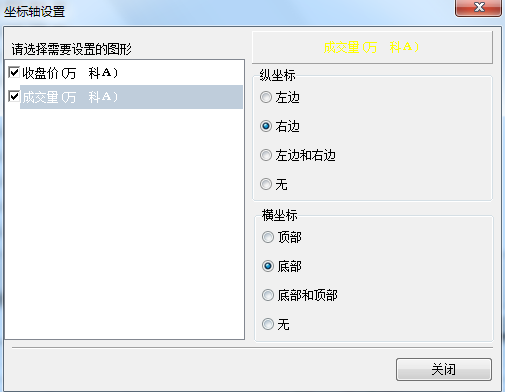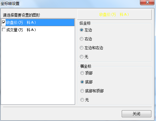 第二步:在弹出的对话框中勾选‘收盘价’,并在‘纵坐标’中选择‘左边’