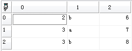第0列是查找的值的行标,第1列是查找值的列表,第2列是查找到的值。
