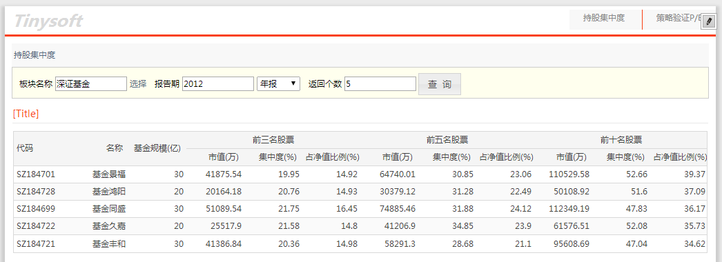 选中当前表格内容区,则出现工具栏,点击其中的编辑按钮,弹出元素配置栏,先以“表格”展示持股集中度,输入模型名,自动获取参数。
