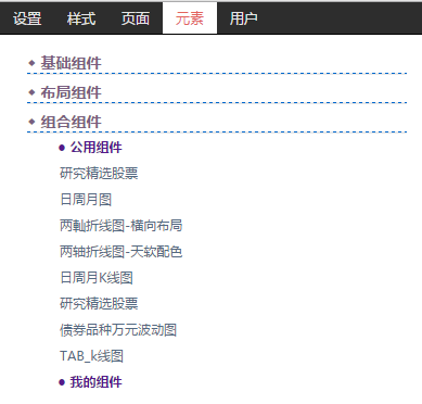 选中空内容区后,点击添加按钮,通过“元素-组合组件-公用组件”。