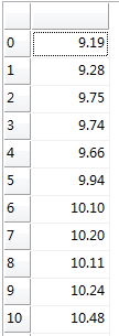 取得指定列的所有值(按列名)。该函数的功能与直接用读取子矩阵的方式一样,但是用子矩阵的方式更简单快速。功能相当于t[:,fname]