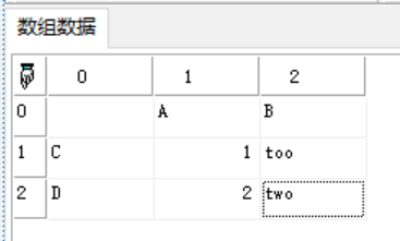 范例数据表:a:=array('C':('A':1,'B':'too'),'D':('A':2,'B':'two'));