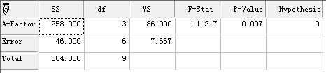 因素A有4个水平,对A进行重复试验,获得观察值如下: