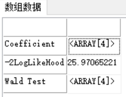 -2LogLikeHood:模型检验,-2对数似然值。-2对数似然值是正数,用来描述模型对因变量的预测能力。数值越大,预测越差。计算公式: -2LogLikeHood=-2lnLθ=i=1n[yiα+k=1Kβkxki-ln?(1+eα+k=1Kβkxki)] Wald Test:对每个变量的显著性检验, 其中,Wald-Stat:Wald统计量 Z-Stat:Wald统计量的平方根 P-Value:卡方检验p值,即接受零假设的临界值 Hypothesis:是否通过检验,0或1 |