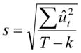 为方程系数的估计,T为样本容量,k为自变量个数,X为常量加自变量的矩阵,其中