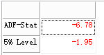 时间序列的平稳性ADF检验;返回结果为ADF统计量和给定显著性水平下的ADF统计量的临界值;如果ADF统计量的绝对值比临界值的绝对值大,则可在该显著性水平下,拒绝原序列存在单位根的原假设,即原序列是平稳的