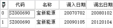 查询指定股票做为成分股在指定指数INDEXID指定时间内begt到endt,调入和调出指数详情.