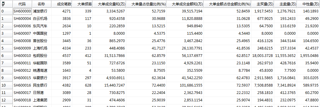 天软金融分析.NET函数大全 > 金融函数 > 板块 > 行情指标 > 大单分析