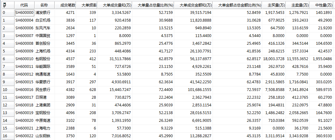 天软金融分析.NET函数大全 > 金融函数 > 板块 > 行情指标 > 大单分析 > 临时