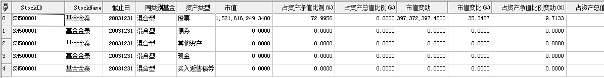 返回Array数据表,返回指定基金指定报告期的基金扩展-资产配置