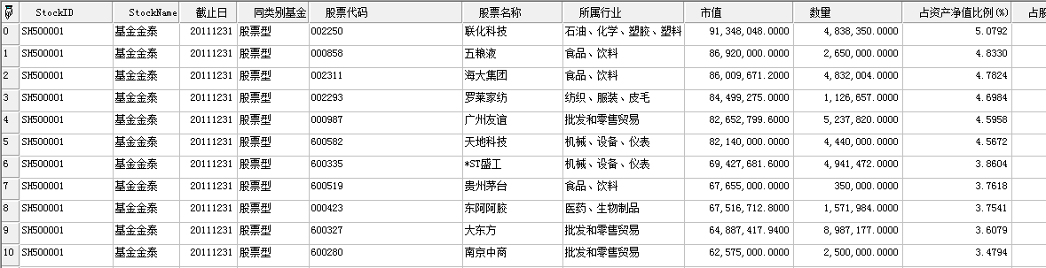| 返回 | Array | 数据表,返回指定基金指定报告期的基金扩展-持股情况 |