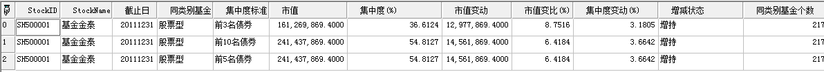 | 返回 | Array | 数据表,返回指定基金指定报告期的基金扩展-持债集中度 |