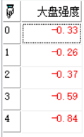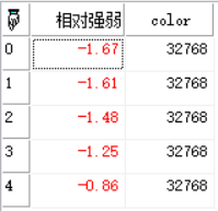 数组结果说明:第一行为个股强度值,第二行为大盘强度值,第三行为相对强弱值