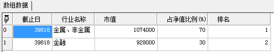 策略验证-数量类组合-t日行业配置,由tGP数据表中按行业统计个各行业的市值和排名