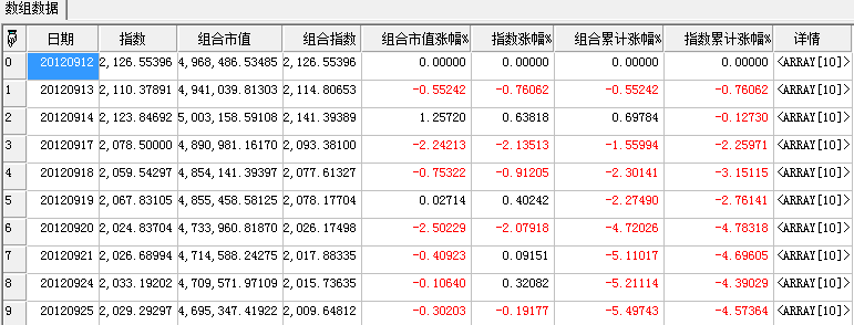 | 返回 | TableArray | 投资组合股票每日市值,涨幅,累计涨幅并和指数进行比较 |