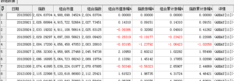 | 返回 | TableArray | 投资组合股票每日市值,并和指数进行比较。 |