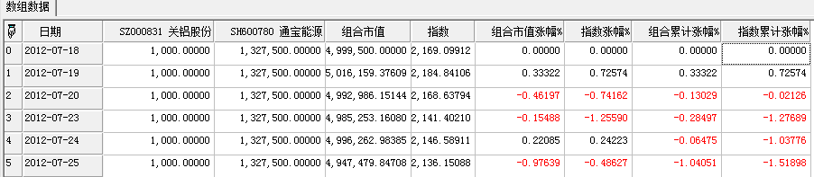 返回TableArray对已经建立好的投资组合进行跟踪,返回投资组合的组合市值,涨幅等。