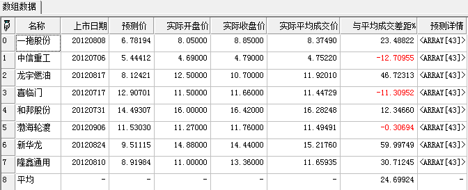 | 返回 | TableArray | 股票股价信息,预测价,实际开收盘价 |