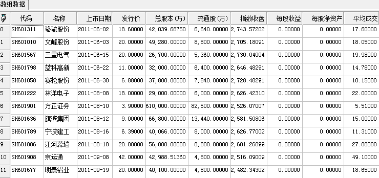 返回Array,TableArray新股定价-历史校验,用次新股比较定位预测新股定位