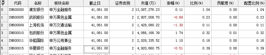 返回Array数组,成分股的涨幅、比例、配置比例等数据。