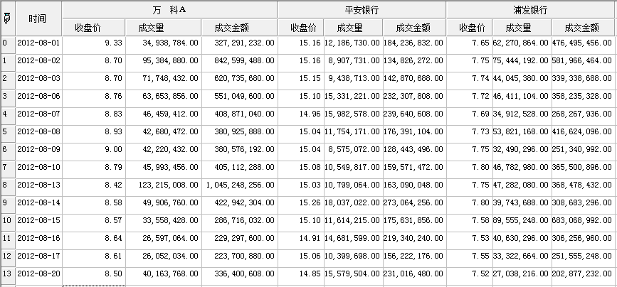QueryWithPeriod("","SZ000002;SZ000001;SH600000;SH600004",@True,"","收盘价",@close(),