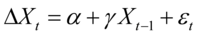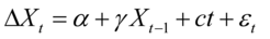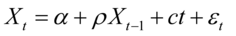 其中为截距项,为时间趋势,为均值为0,方差为的白噪声,若,则序列是平稳的;若,则序列是非平稳的;若,则序列是发散的。