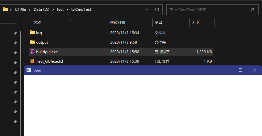 输入:tsl --buildexe=Test_GUIexe.tsl --output=buildgui.exe -buildgui