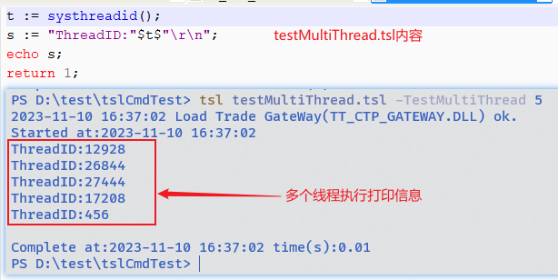 输入:tsl testMultiThread.tsl -TestMultiThread 5