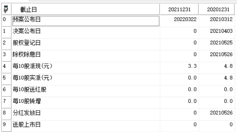 | 返回 | Array | 数组类型,返回最近ShowNumber个分红送股的数据 |