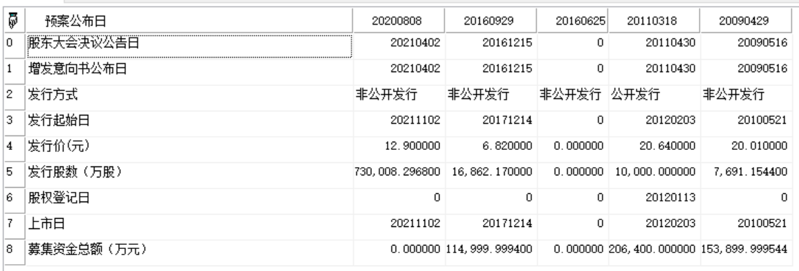 数组类型,返回历年增发 (包括预案、决议、实施)数据