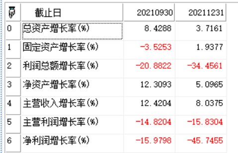 返回Array数组类型,返回指定证券成长能力指标
