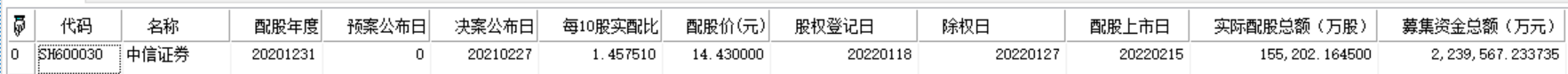 | 返回 | Array | 数组类型,返回指定板块指定区间配股的相关数据 |