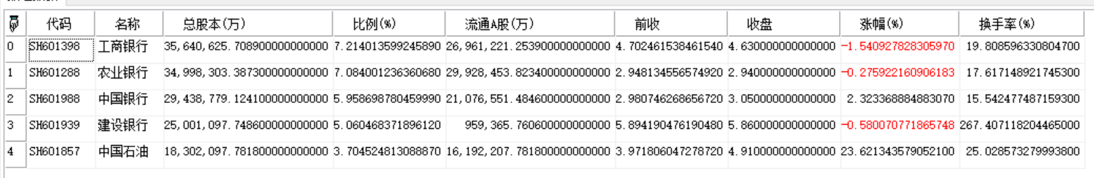 | 返回 | Array | 数组类型,返回指定板块指定日指定字段排名的股本数据 |